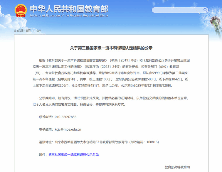 近日,教育部公布了第三批国家级一流本科课程认定结果公示,澳门金沙娱乐城App