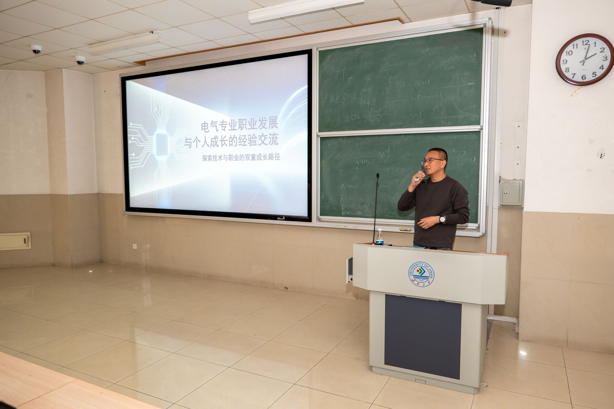 魏欣结合自身20余年电力行业从业经历,分享了从积成电子工程师到创业公司负责人的职业历程。他围绕配电自动化、无人机电力应用等行业前沿方向,解析了电气专业在电网数智化转型中的岗位需求,同时从“技术积累+行业资源+职业规划”三个维度,为新生梳理了大学期间的成长重点:建议同学们夯实电路、自动化控制等专业基础,积极参与电力企业实习,关注行业标准与新技术迭代。