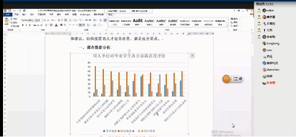龚宇雷老师就自评报告毕业要求的撰写部分进行了总结,参会人员对其中毕业要求指标点的支撑课程和权重设置进行了充分讨论。龚宇雷老师介绍,毕业要求在整个自评报告中起承上启下的作用,他参考了专业认证成功的案例,结合了现有的资源,对照培养目标以12个毕业要求进行支撑,完全覆盖通用标准中的12条毕业要求。参会教师利用大量时间充分讨论了不同课程对不同毕业要求指标点的支撑关系和权重设置,为以后继续讨论和修正持续改进和课程体系的工作奠定了基础。