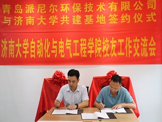 校友交流会暨基地签约揭牌仪式在青岛派尼尔环保技术有限公司举行。山东中天人和教育科技发展有限公司董事长、澳门金沙娱乐城App