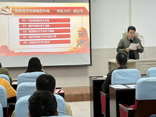 研究生第一党支部书记郭浩倡议全体研究生党员发挥党员先锋模范作用,从最困难的群众入手、从最突出的问题抓起、从最现实的利益出发,冲到一线,敢于担当,尽职尽责,用自身的行动带动身边的人向着正确的目标前进。号召全体研究生党员能够响应倡议书中的有关倡议,为澳门金沙娱乐城App