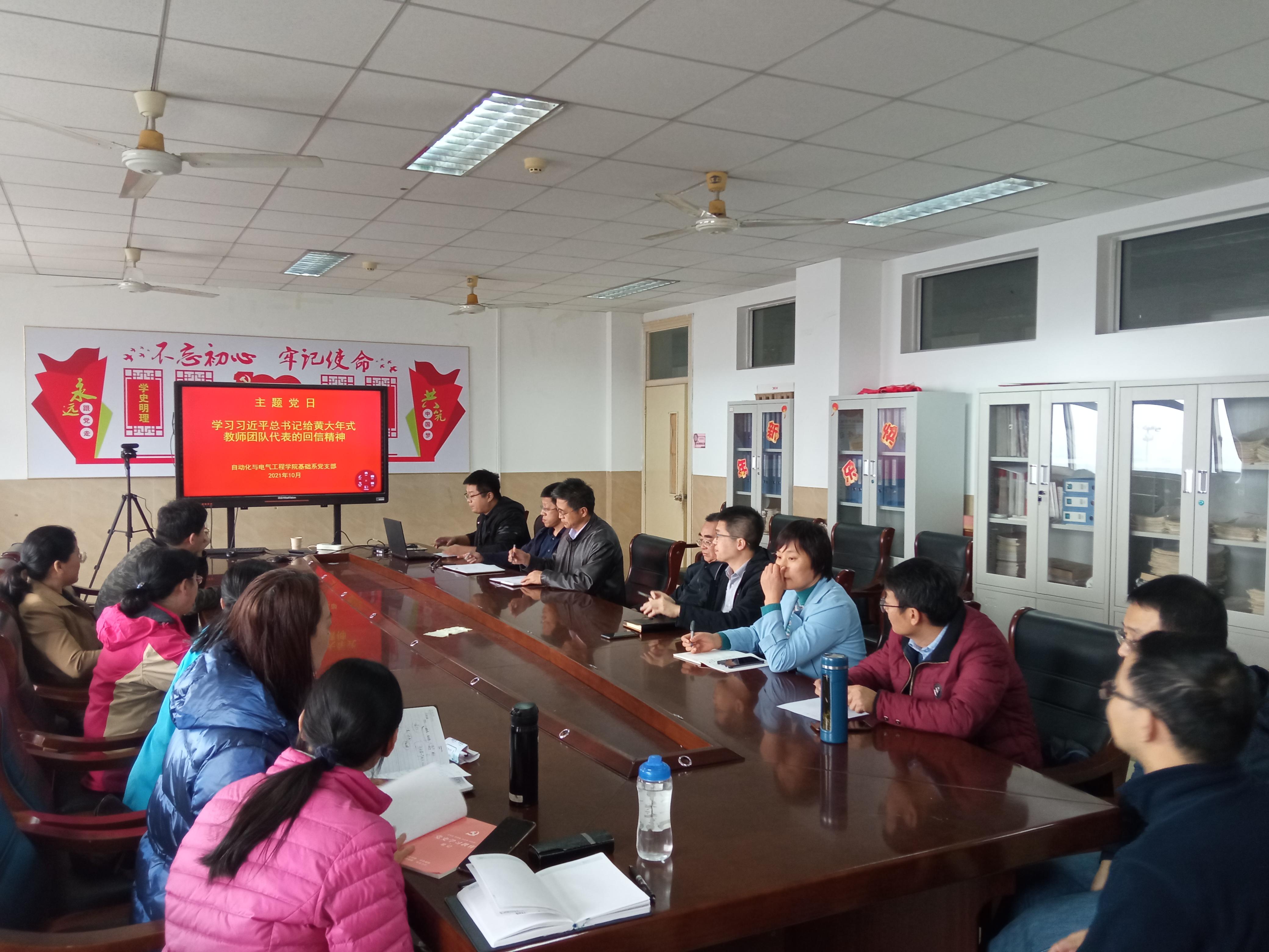 党委部署要求,10月26日,基础系党支部组织全体教师党员,开展了学习贯彻习近平总书记给全国高校黄大年式教师团队代表重要回信精神的主题党日活动。