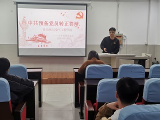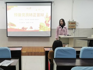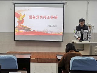 答辩会上,每位预备党员依次进行了PPT展示,汇报了自身在预备党员期间的个人表现情况,主要包括思想政治表现、学习工作情况、模范带头作用发挥情况,存在问题和不足以及今后努力的方向等。预备党员汇报结束后,评委结合他们在预备期内的个人表现进行了提问,并对他们提出了殷切期望和要求,希望他们在将来要更加严格的要求自己,真正起到党员模范带头作用,更好地服务同学。