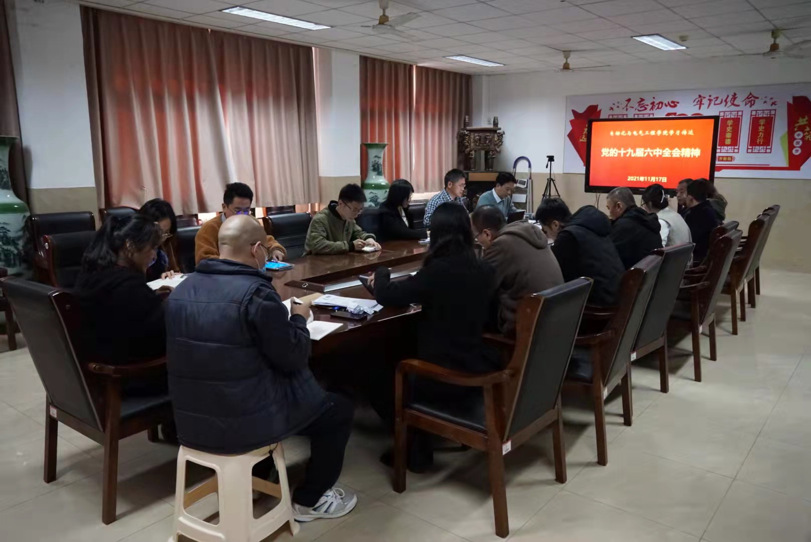 党委书记夏卫东传达了习近平总书记在十九届六中全会上做的报告和重要讲话精神,带领大家集体学习研读了《中国共产党第十九届中央委员会第六次全体会议公报》全文。