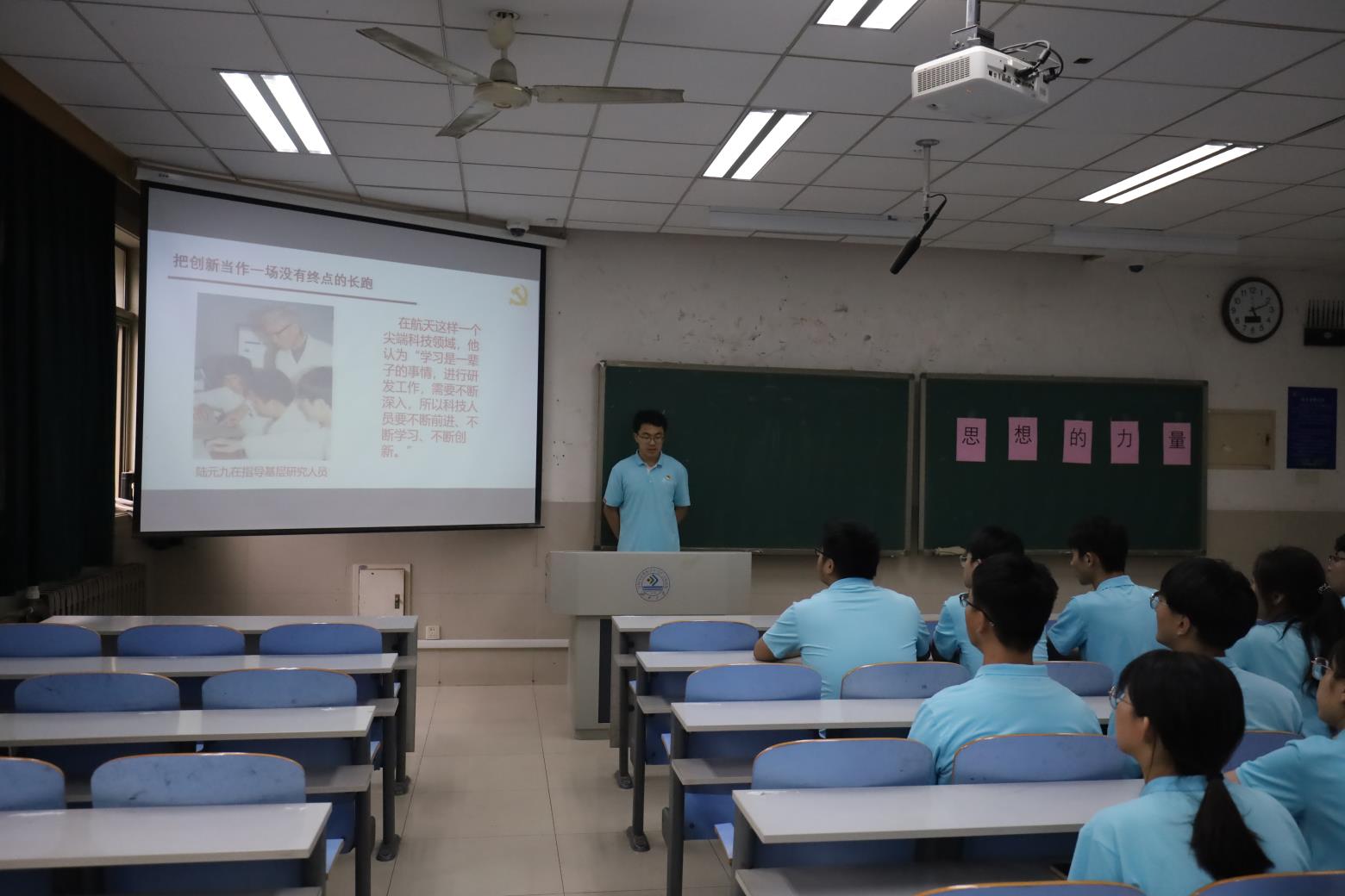 在第十教学楼202教室开展“思想的力量·最后一堂思政课”—2023届毕业生思政讲师团宣讲活动。