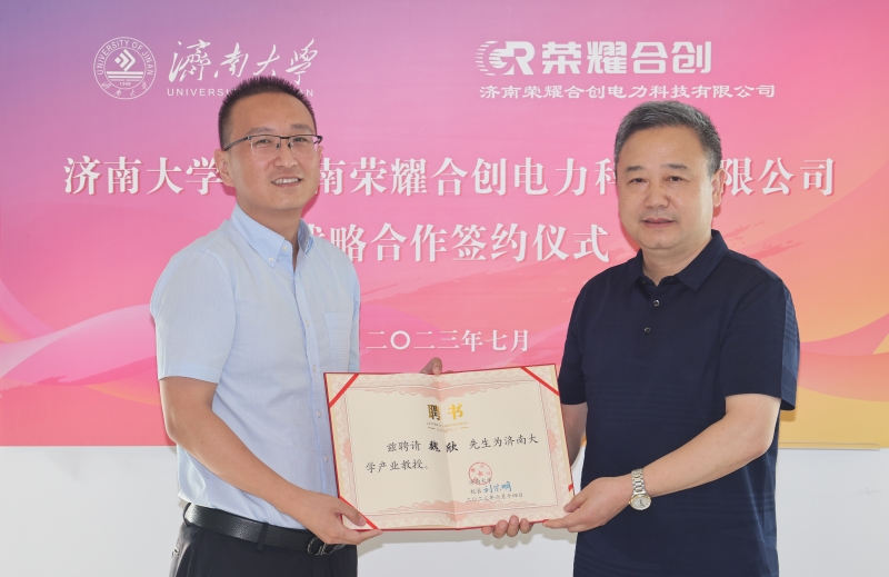 产业教授聘书。对济南荣耀合创电力科技有限公司给予澳门金沙娱乐城App