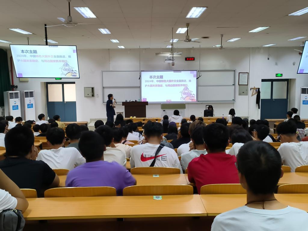于2024年9月22日下午在明远教学楼举办了题为“一带一路小语种与大学生职业生涯规划”的技能提升讲座。本次讲座由洋光小语种讲师刘峰主讲,2024级辅导员刘永旭主持。2024级辅导员阚红淼及2024级新生参加了本次讲座。