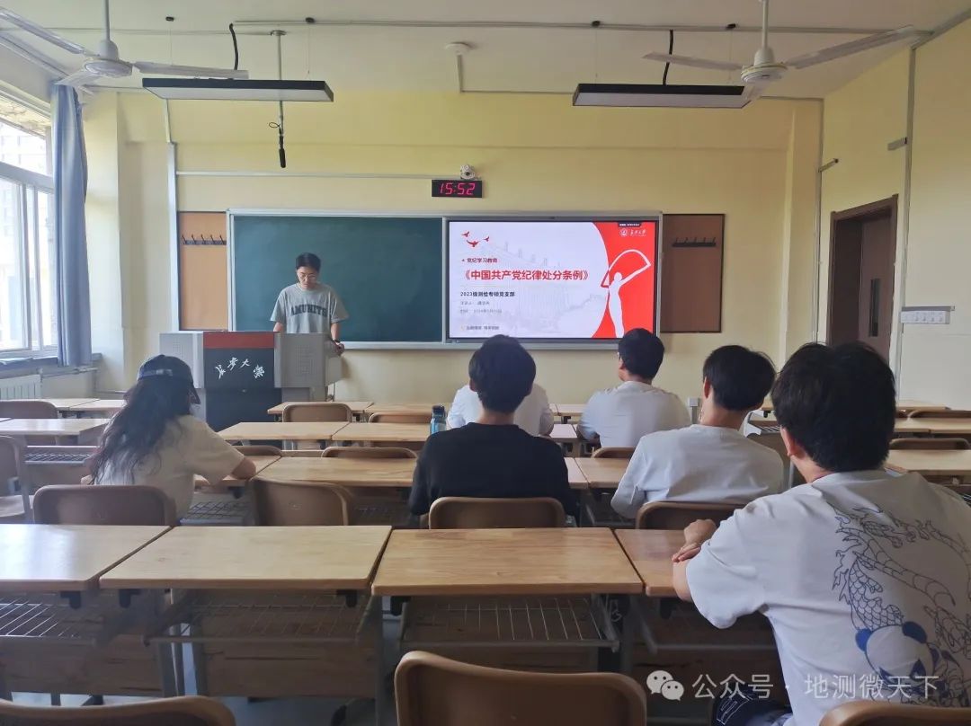 为深入学习《中国共产党纪律处分条例》,切实落实好习近平总书记在中国共产党第二十届中央纪律检查委员会第三次全体会议的重要讲话精神,2024年5月13日下午,2023级测绘专硕党支部于澳门金沙娱乐城app