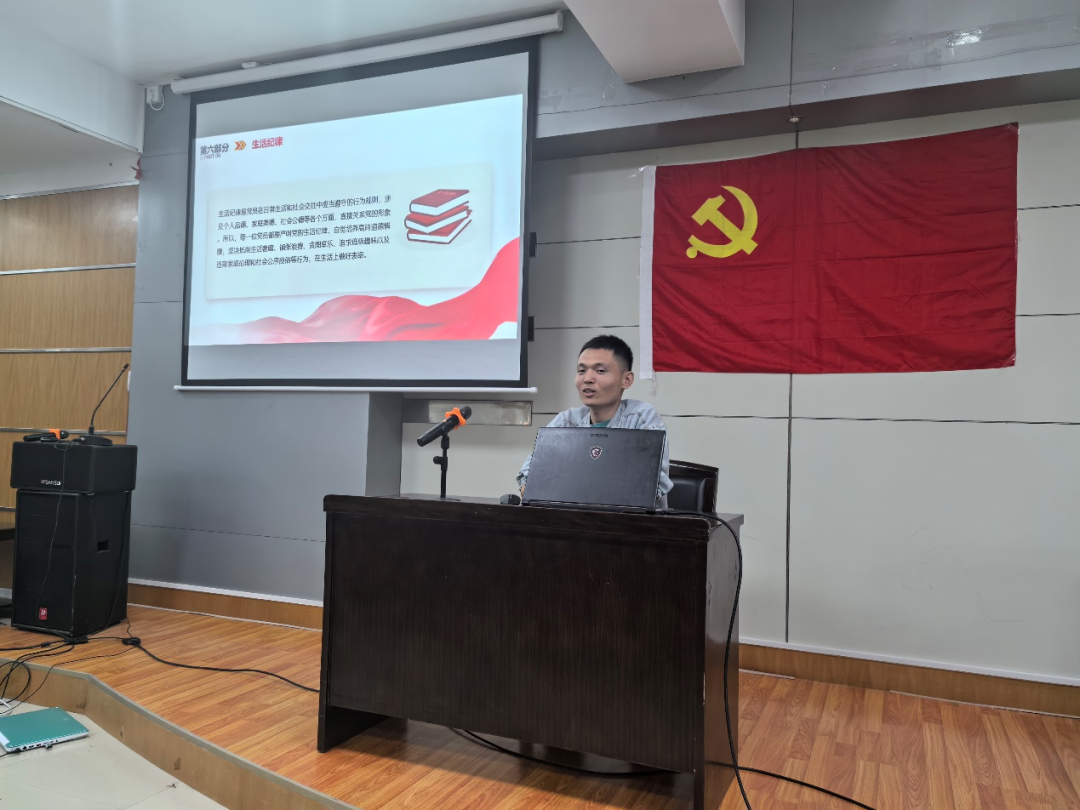 会议上,杨海城老师从《条例》简介、历次修订情况及其主要内容三个方面展开介绍,围绕党的政治纪律、组织纪律、群众纪律等六个方面进行了说明,并重点结合学生党员的权利与义务进行了解读。他强调,《中国共产党纪律处分条例》是根据《中国共产党章程》制定的党内法规,制定该条例旨在维护党的章程和其他党内法规,严肃党的纪律,纯洁党的组织,保障党员民主权利,教育党员遵纪守法,维护党的团结统一,保证党的路线、方针、政策、决议和国家法律法规的贯彻执行。