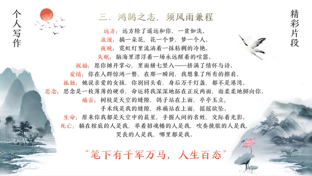 文章憎命达。看似惊艳的文字背后也隐秘着少年许多不为人知的苦难,这底色终究是明灭在他的时光里,成为了最软的情怀与最硬的风骨。在获奖感言里,他这样总结道: