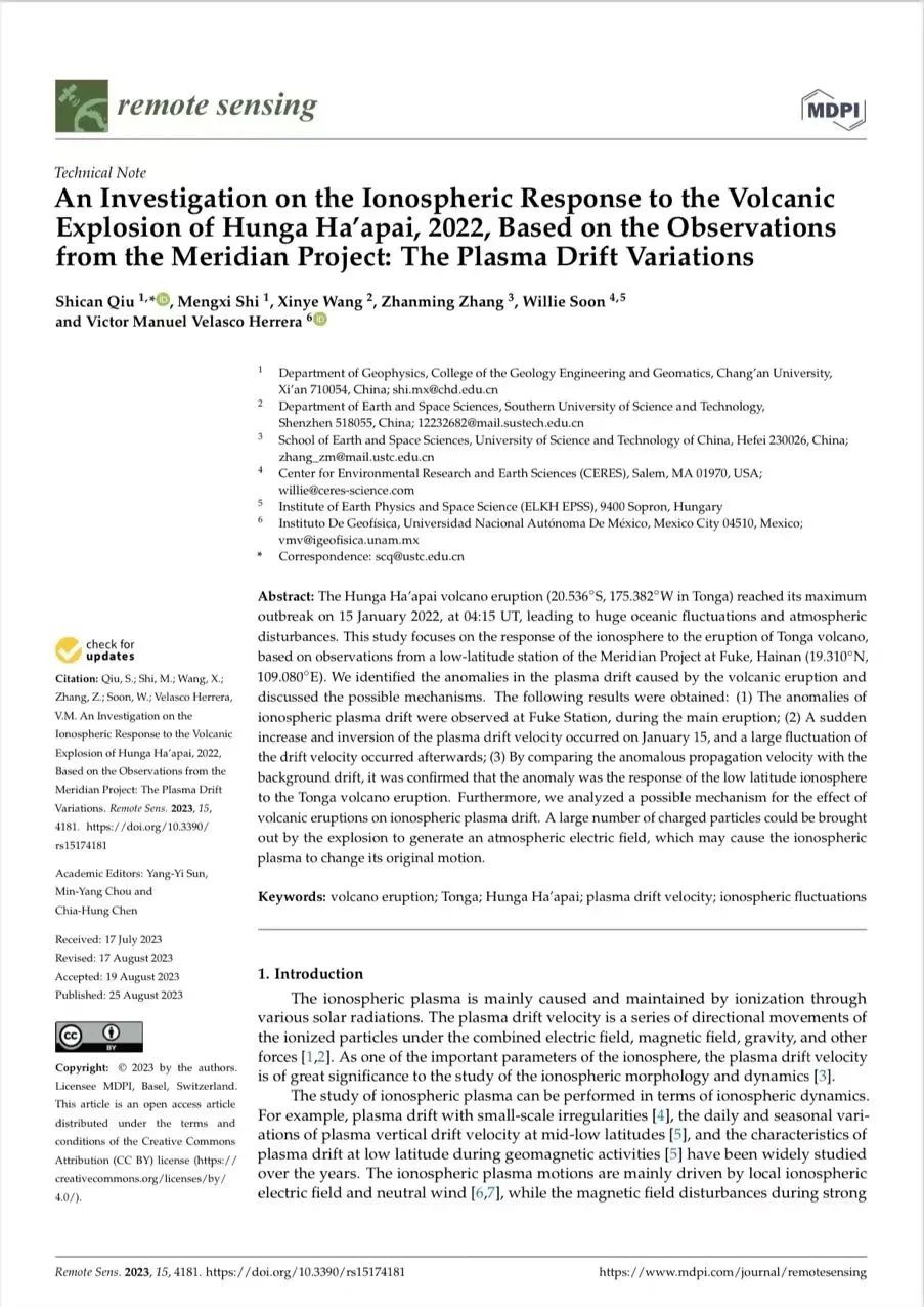 在地质活动的电离层响应研究,中央高校基本科研业务费专项资金项目(基于子午工程的汤加火山爆发对近地空间环境的影响研究)的支持下,他在地学领域高质量科技期刊分级T1期刊、中国科澳门金沙娱乐城app