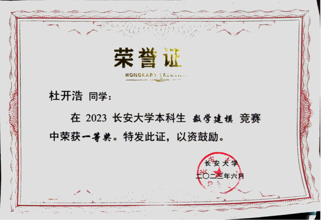 数学建模一等奖、第一届西北赛区物理实验竞赛省级二等奖等各类比赛奖项。