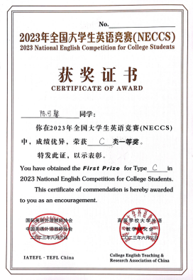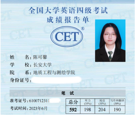 下发的复习册、练习题,确保每道题都弄懂、弄会并掌握其背后原理。针对偏重记忆的考试,她选择在考试前一周集中背诵,以免过早开始而产生遗忘。另外,每个人擅长的方面不同,与同学、朋友交流也是很好的学习方式。因为很喜欢在大学遇到的英语老师,陈可馨参加了全国大学生英语竞赛,她从高中时期起就有看美剧听英语的习惯,坚持背单词并利用空闲时间研究真题卷,最终取得了还不错的成绩并以592的高分通过大学英语四级。除此之外,陈可馨还积极参与大创比赛,她在大家激烈的思想碰撞中,感受到了创业型比赛的魅力。