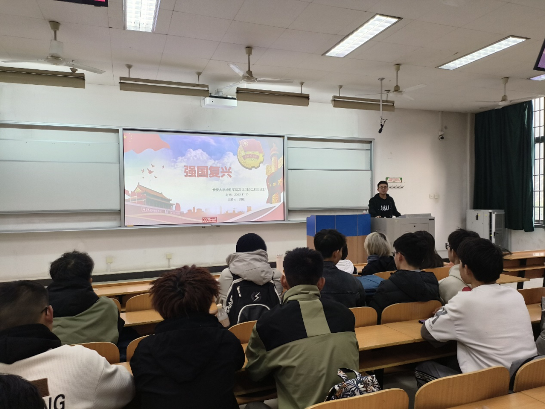 2023260402班团支部于11月10日在渭水校区WX4104教室开展了以“强国复兴”为主题的团课。会议由团支书周程主持,402全体团员青年参与了本次会议。