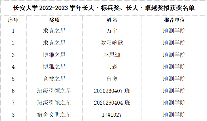 2022-2023学年度本科生先进集体和先进个人拟获奖者。澳门金沙娱乐城app