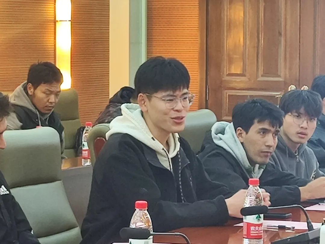 座谈交流环节,2020级推免学生苏晓成向低年级同学分享了自己的学习生活经验。苏晓成同学介绍了自己保研推免的心路历程以及如何与舍友友好相处,建议同学们坚定学习目标,不要轻言放弃。2021级的霍加恩别克·海拉提别克同学分享了他选择投身军旅的原因以及这段经历如何塑造了他。他深感在部队中接受的锻炼对他产生了深远的影响,不仅增强了他的身体素质,还提高了他的自律能力,并帮助他形成了良好的团队合作精神。2021级“博雅之星”获得者韦森同学则分享了在大学生艺术团的工作经历,他鼓励民族学生要充分发挥自身优势,积极参与文化艺术活动,在参与中找寻热爱。座谈会在轻松愉快的氛围中逐渐向好。随后,民族学生依次发言,畅谈入学以来的成长进步、收获感想,对澳门金沙娱乐城app