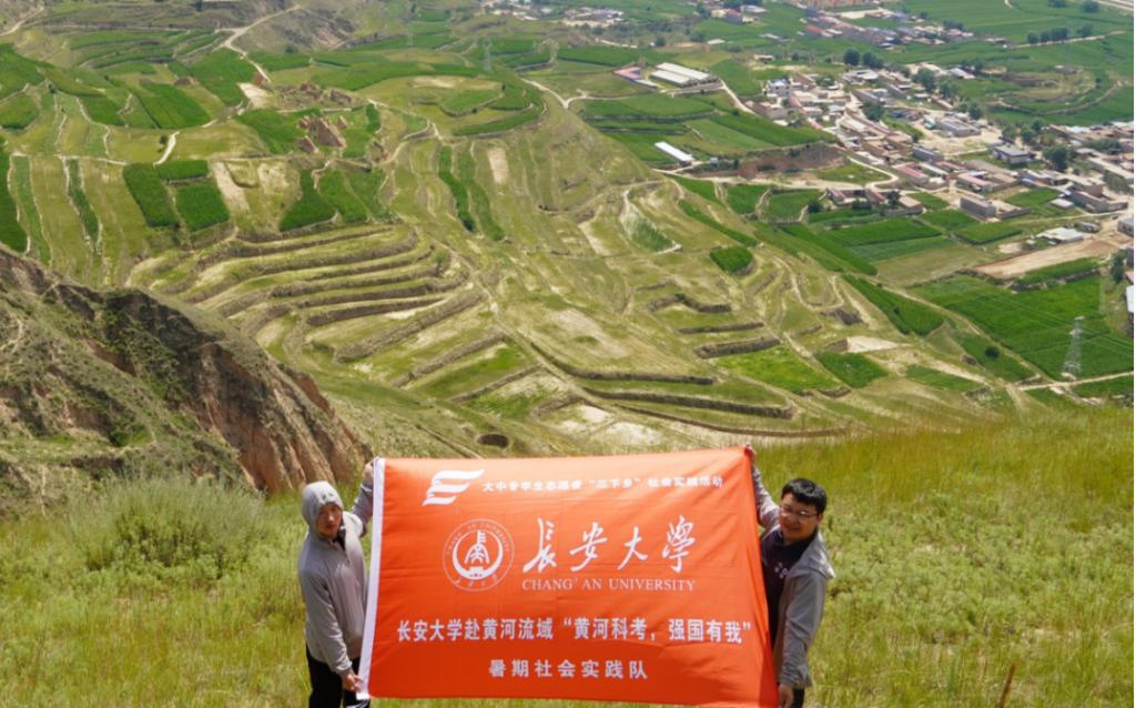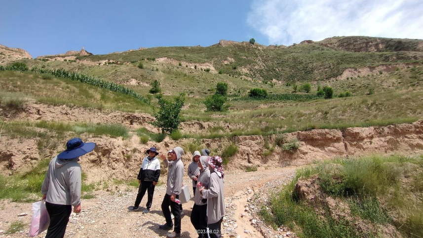 “黄河科考,强国有我”暑期社会实践队跟随科考队赴甘肃省临夏回族自治州的东乡族自治县果园乡对洒勒山滑坡进行实地考察与调研。