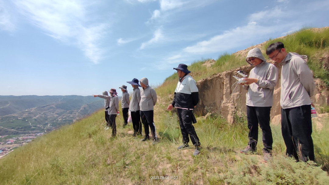 暑假社会实践队在科考队庄建琦教授的带领下从甘南藏族自治州共和市出发,驱车近三个小时到达临夏回族自治州东乡县果园乡巴榭河北岸的洒勒山滑坡。庄建琦教授就洒勒山滑坡发生的“三怪”展开介绍了洒勒山滑坡的发生机理。讲解完成后与实践队员们一起飞无人机采集影像资料,并结合影像资料为实践队员们进一步讲解黄土滑坡的地貌特征。为了增强队员们对黄土滑坡的认识,庄建琦教授带领实践队员们徒步到滑坡体上开展调研学习,通过庄老师对滑坡形成机理的讲解以及徒步考察中与实践队员的互动交流,实践队员对黄土滑坡形成的成因机理有了更深入的认识,对课内所学的专业知识有了更深入的理解。