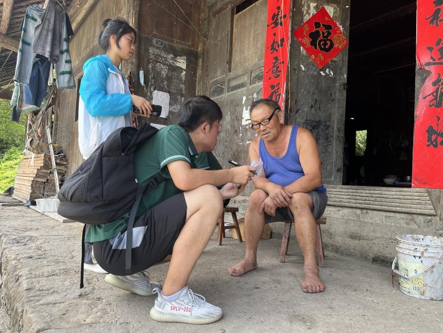 上午,实践队员深入苗寨,通过问卷调查和面对面访谈,与家长、学生探讨了普通话在家庭、澳门金沙娱乐城app