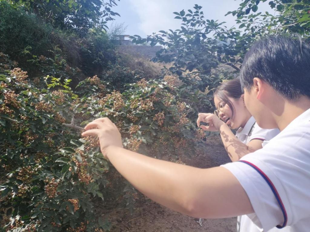 此外,实践队深入花椒种植园区,参观花椒生产车间,了解花椒生产过程,调研花椒产业发展现状。据产业园负责人介绍,花椒在富平县栽培历史悠久,经验丰富,经过近年来的不懈努力,因地制宜地选育出了许多优良的栽培品系。其中,大红袍花椒和槭椒在生产栽培中占95%以上。花椒是重要的油料树种,其种子含油25%—30%,出油率22%—25%,油具有辛香味,除供食用外,还可作为工业用油,另外含有丰富的亚麻仁油二酸。其叶、果皮含芳香油,提取精制后可作香精原料,并可入药,作为我国重要的出口物资,出口至日本、韩国等多个国家,为国家出口创汇做出了重要贡献。通过实践学习,实践队员深深感慨于富平花椒产业的快速发展,作为富平县的重要经济作物和全国重要农业文化遗产,花椒产业在富平县的农业发展和乡村振兴上定会释放更大的动力。