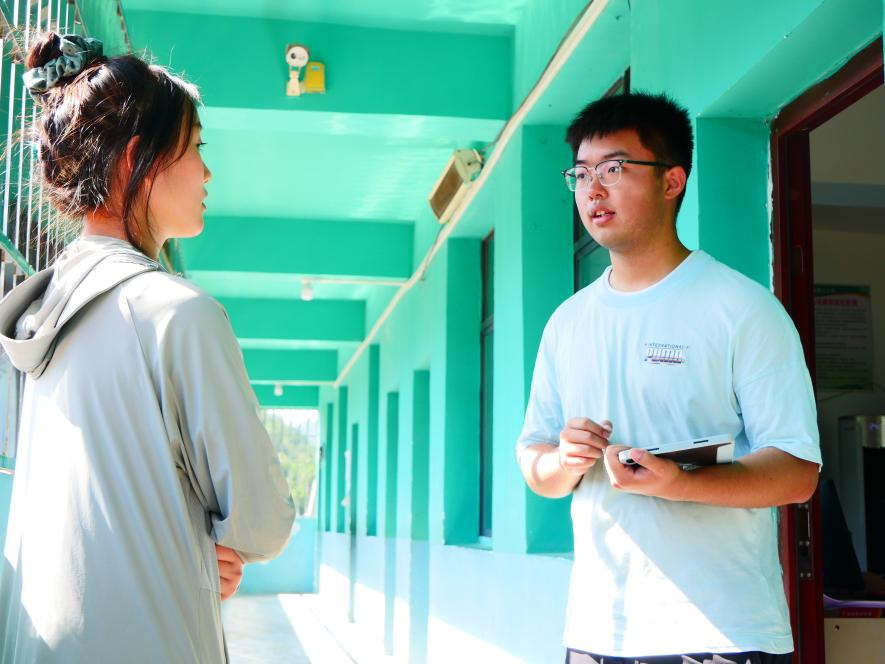 筑梦黔行队为南江村初、高中生公益性辅导相关课程,鼓励山村孩子前来自习,使用“随叫随到、随问随答”的体系助力每一个山村青少年追逐自己的梦想。在辅导过程中,团队队员认真解答每一道题目,选择易理解、最简便的方法进行讲解,在同学们的反馈声中一致称赞。