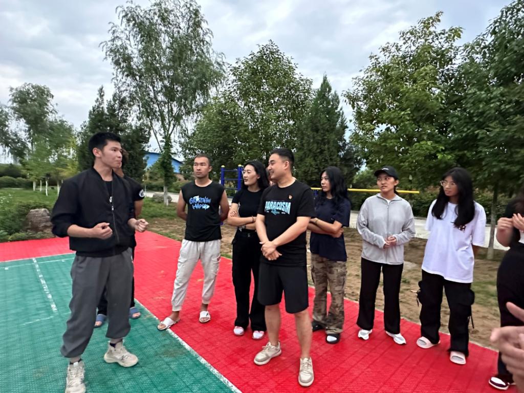 于汉中实习基地篮球场举办了一场别开生面的征兵宣讲会。参加会议的有2021级辅导员杨海城、参军退役学生霍加恩别克·海拉提别克以及实习基地的新疆、西藏籍全体民族生和其他有意参军入伍同学。