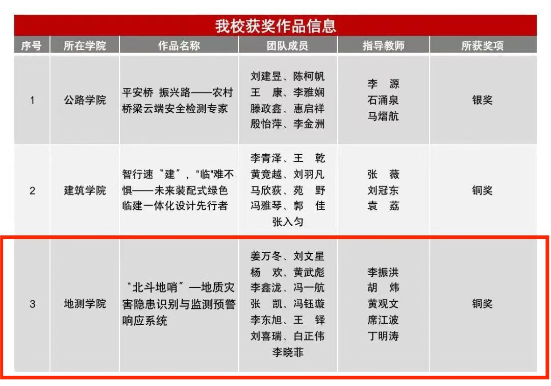 报送的作品《“北斗地哨”—地质灾害隐患识别与监测预警响应系统》荣获全国终审决赛铜奖。