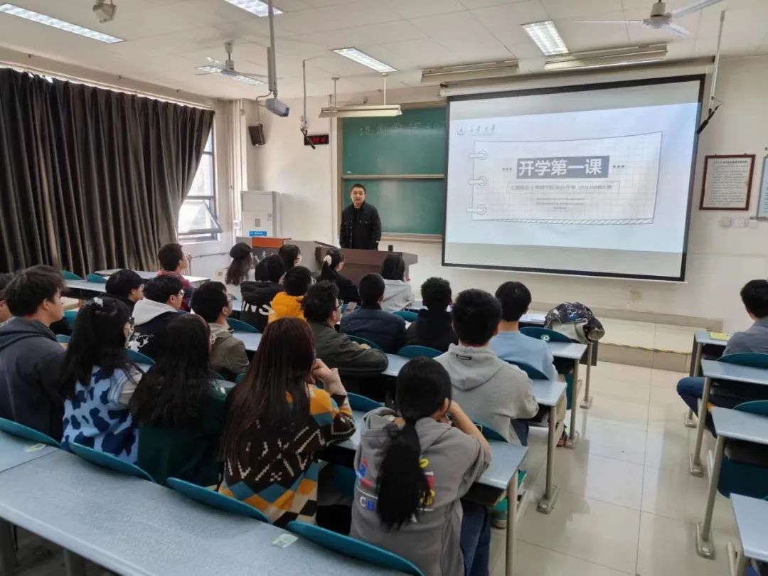 随后杨海城老师提醒各位同学大二已经到了第二个学期,要求同学们端正自己的学习态度,认真对待考试。面对愈发激烈的社会竞争,同学们需要对自己的未来作出合理的规划,理性的选择就业或者考研。杨海城老师指出,现在中国经济正处于转型期,将加快推进产业数字化创新,需要更精湛技术人员,鼓励同学们努力学习专业文化知识。