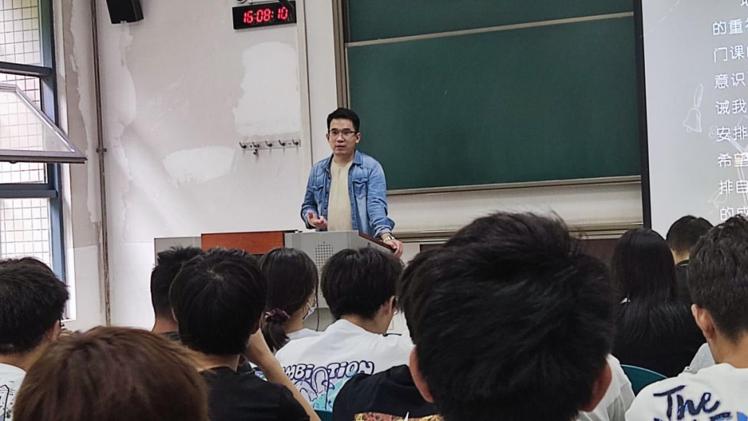 随后,苗行生老师结合自身经历,提出自己对大学学习的看法,突出强调了学习的重要性,并结合班级现状提出希望同学们能积极开展班级建设,建立良好班级氛围,营造良好的、向上的学风。
