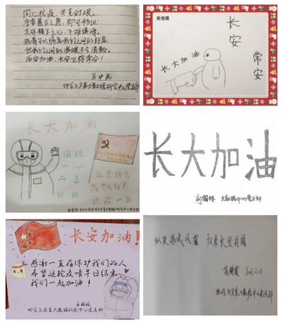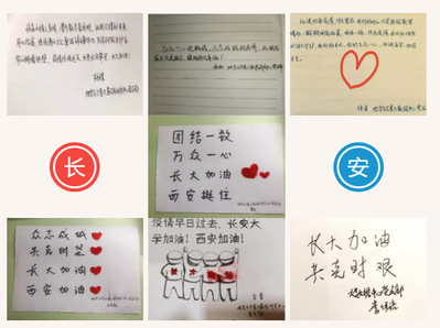 由于防疫要求,南校区东院、西院的同学需要寝室制动,部分支部党员无法加入志愿者队伍,为大家服务。但他们并没有因此懈怠,而是通过线上开展“加油长大,共克时艰“的主题活动的方式,为一线的支部党员送去鼓励与支持,用特殊的方式积极为疫情防控贡献自己的青春力量。大家用手中笔为参与志愿者活动的党员送去自己的祝福,字里行间是对他们最大的敬意,是对他们的肯定,更是与他们齐心协力的信念,为所有奋战在一线的志愿者、医疗工作者以及社区工作者等抗疫者“大声的加油”。