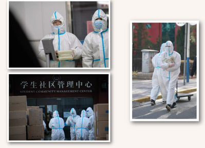 17日清晨起,管控升级后的每一餐,由南校区北院的支部党员同其他志愿者准时送达到在宿舍制动同学的手中;除了一日三餐外,日常所需的物资经过他们的组织安排也及时送到同学们手中;根据要求,按时组织同学们进行核酸检测,确保不落下每一个人,一张张紧凑的表格保证了3栋公寓楼日常生活的井然有序,这背后是他们每天奔波在公寓楼下的忙碌而坚定的身影,是一声声带着疲惫的嗓音,“同学,你的饭到了”。