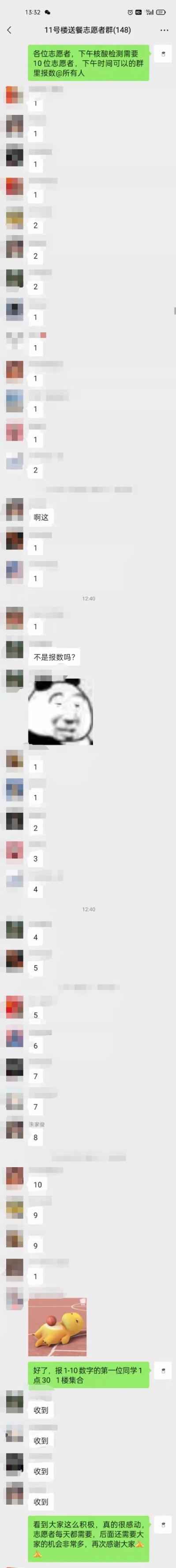 决定启动最严的防控措施,所有学生在宿舍制动,由志愿者送餐上门。学工办的老师还在想,疫情当前,志愿者可能不太好找,但是在实际招募志愿者时,每一位辅导员都被学生们的表现深深感动,本科生短短10分钟,报名300多人,东民老师说,研究生建群2分钟,报名人数超过150人。智勇老师说,虽然之前我一直在“diss”他们,但这一刻,他们让我热泪盈眶,他们第一时间申请走上服务一线,尽己所能为抗击疫情奉献力量。