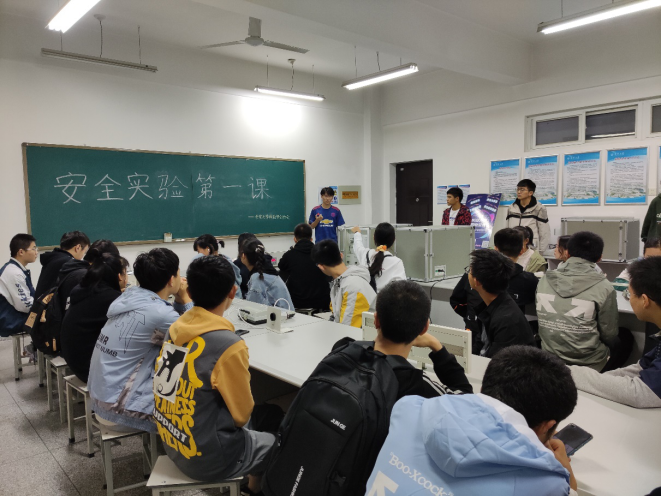 园安全协会主席王雷为同学们简单介绍了本次“安全实验第一课”的操作流程、主要内容与一些实验仪器的安全注意事项。