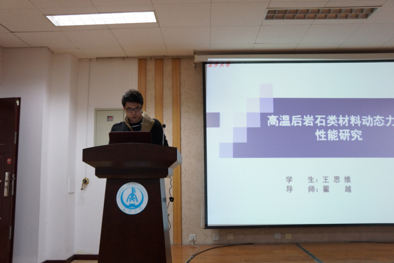 会上硕士研究生王思维、博士研究生李楠同学分别作了题为“高温后岩石类材料动态力学性能研究”和“建筑设计对施工安全的影响研究”的学术报告。两位同学结合自己的所学所思,与大家分享了自己的学术成果和学术观点,理论丰富、观点新颖,获得了同学们的认可和掌声。在两位同学作完报告后,翟越教授就报告中所涉及的内容及方法作了精彩的点评。并且提出研究生学习不应拘泥于形式,鼓励师生间、同学间多交流,加强各学科之间的交叉学习,提出问题,产生知识的“火花”。