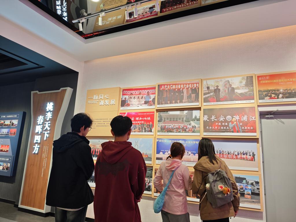史馆,走进长安大学70余载的奋斗历史深处。参观过程中,小组成员不时在珍贵的校史文物和图片墙前驻足、凝视、致敬,并在组长的讲解中深刻体悟到“自强不息、求真务实、团结奋进、追求卓越”的长大精神。