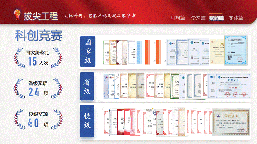涌现出一批先进集体和先进个人,他们在学习研究、创新创业、文体活动、班级建设等各个方面宛若星辰熠熠生辉,引领我们共同成长。希望在他们的带领下,广大学子能“追逐光、成为光、发散光”,以奋进为笔,磨砺青春底色、绘就炫彩青春。