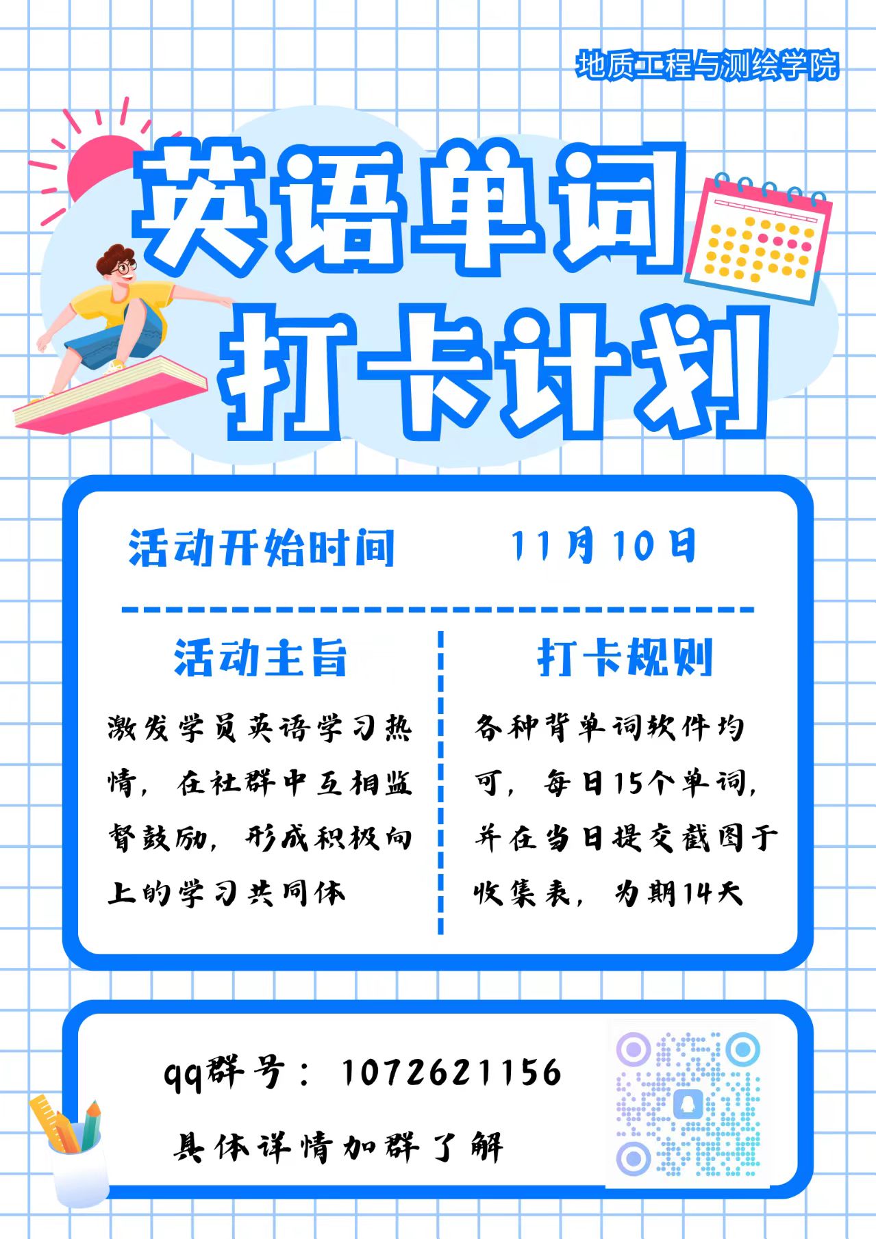 学生会期待同学们的积极参与,加入我们单词打卡的行列,备战四级,拥抱更好的自己,迎接光明的未来