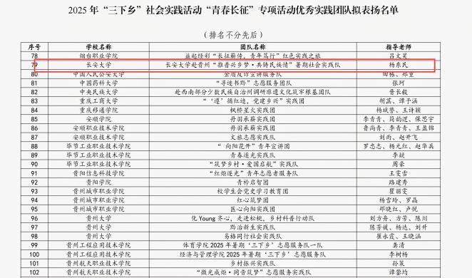 长安大学赴贵州“推普兴乡梦·共铸民族情”暑期社会实践队入选专项活动优秀实践团队表扬名单。