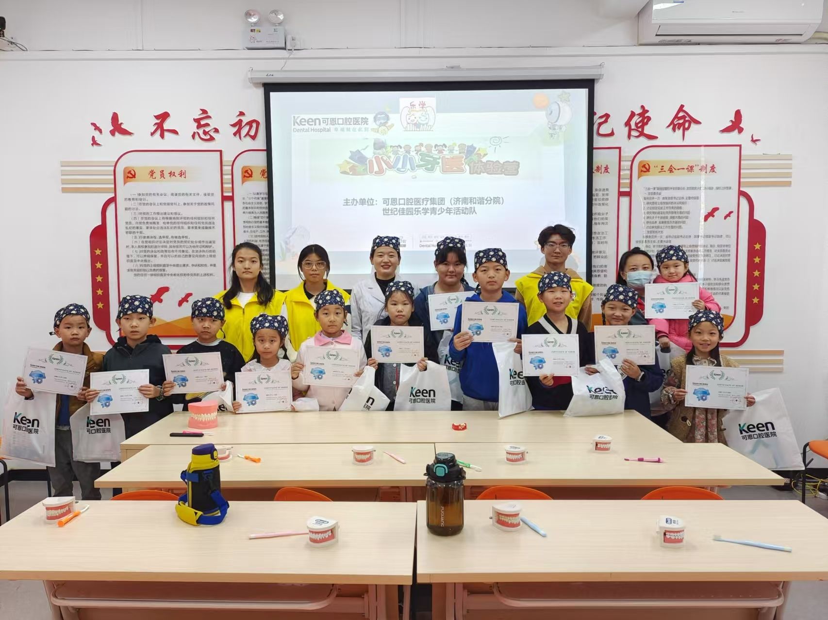 健康伴我行,微笑暖人心。为普及儿童口腔健康知识,倡导健康生活方式,志愿者们联合可恩口腔,为社区儿童开展健康义诊志愿服务。活动现场,志愿者们向居民发放了宣传彩页,小朋友们在专业牙医的悉心指导下,认真学习口腔检查的基本步骤以及保护牙齿的基本措施。在口腔健康知识互动问答环节,针对居民们提出的各类口腔健康问题,口腔医生们均给予了细致且耐心地回答。