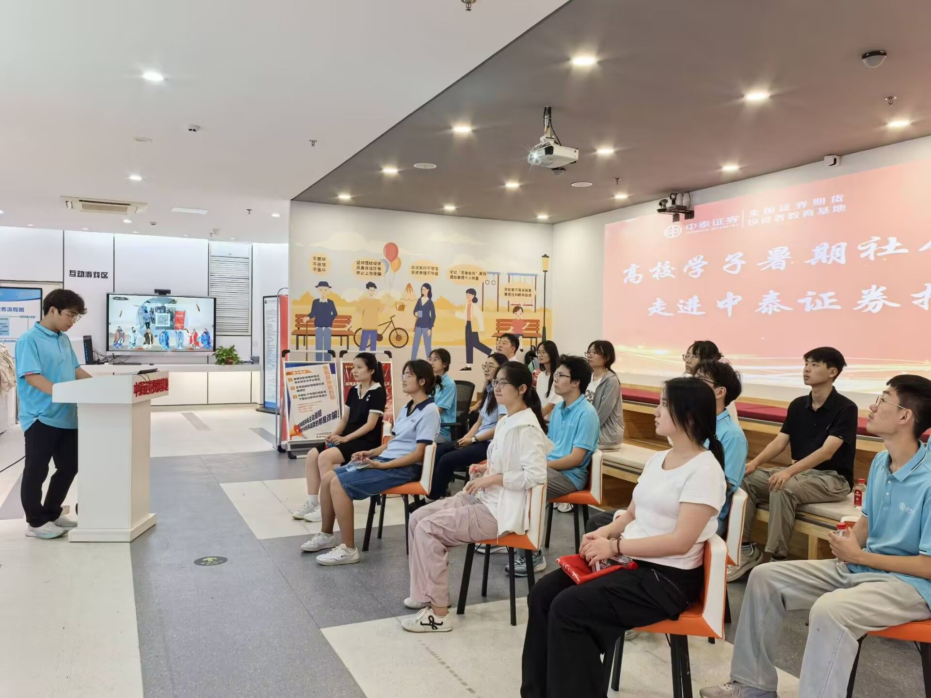 宣讲结束后,中泰证券的工作人员也为实践队队员们带来了实用的反诈知识讲解,通过案例分析提醒大家提高防范意识。同时,工作人员还热情介绍了金融知识,引领队员们参观基地、了解证券发展史,让大家在交流中拓宽了视野。