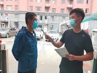 “阳光的少年”社会实践队对周边群众进行采访和宣传。