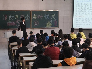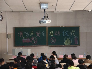 开展消防安全的必要性。随后,主持人播放了有关消防安全的视频,同学们深刻感受到了火灾的无情和消防的重要性。视频播放结束后由老师代表讲话,再次强调防范同学们面对火灾该如何应对。之后,活动负责人肖键大体阐述了消防安全月的活动规划,将举行消防知识竞赛和联谊的消防知识竞赛以及消防作品的征集工作。活动结束后,各部门主要负责人离场,其余活动参与人员在引导员的带领下有序到教室后面的横幅上签字,以此留念。