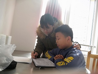 “守望晨曦”志愿队队长车璐妍来到山东省济南市章丘区小学六年级留守儿童的家中,帮助他辅导寒假作业,教给他用电安全的知识,之后还陪他谈心聊天,帮助他解决心中的烦恼。