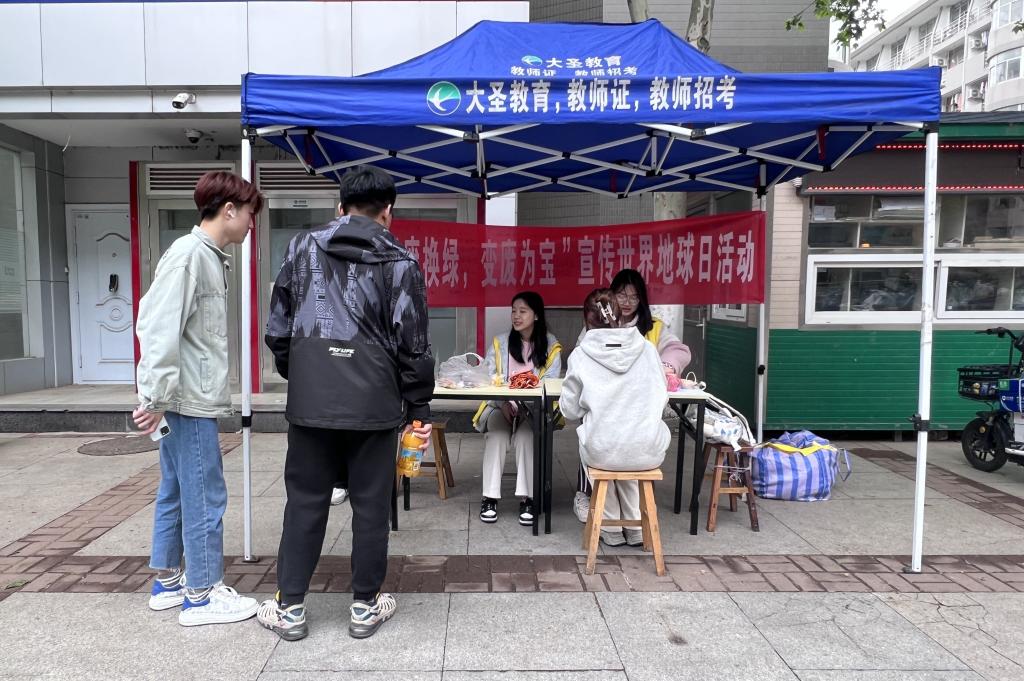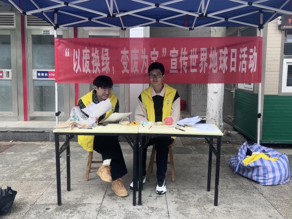 青年志愿者协会于04月22日在八食广场前举行“以废换绿,变废为宝”宣传世界地球日活动。