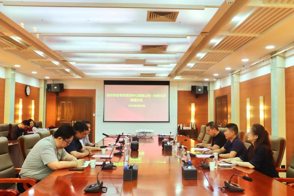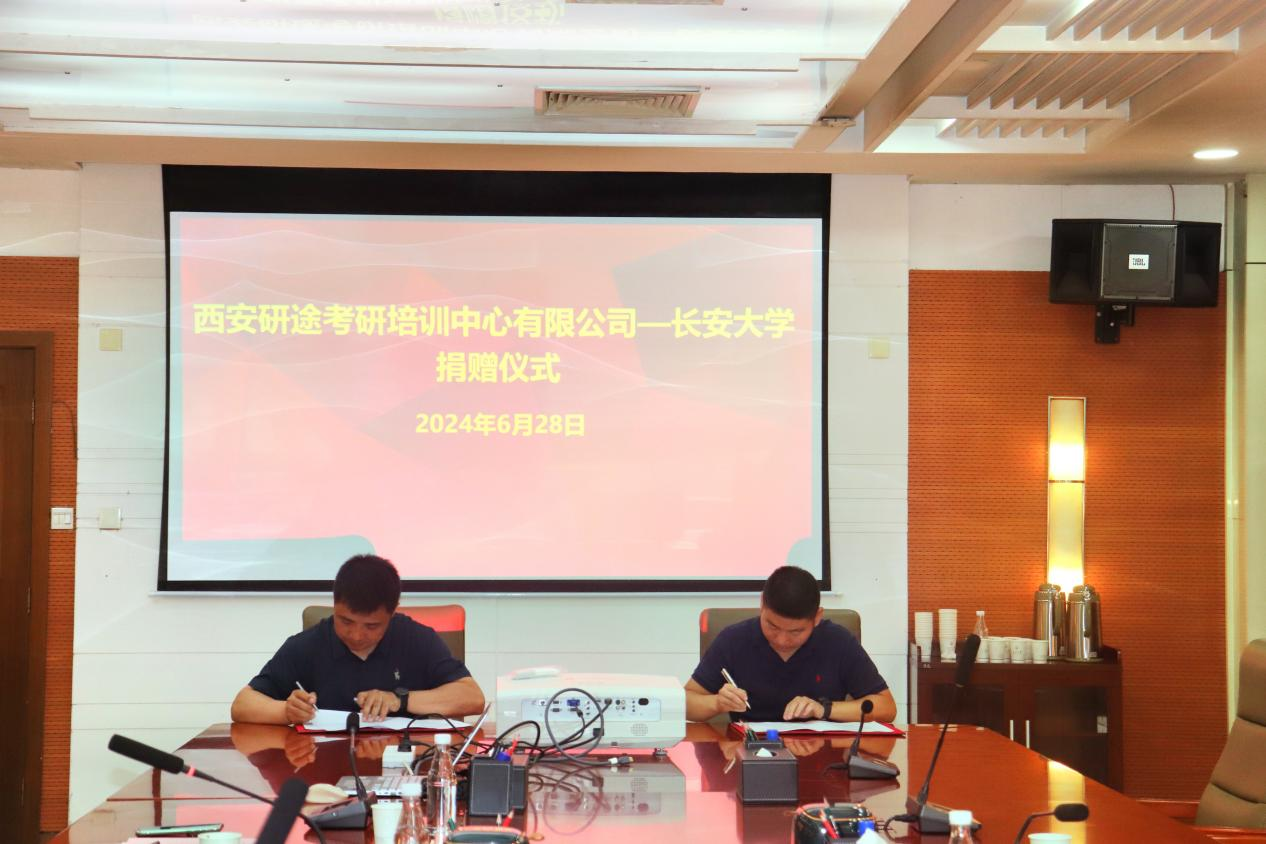 6月28日上午,西安研途考研培训中心有限公司-长安大学“研途”助学金捐赠签约仪式在北校区北辰行政楼会议中心第二会议室举行。西安研途考研培训中心有限公司总经理李翔翔、校办主任唐美伦、研途考研长大校区校长白磊乐,澳门金沙娱乐城app