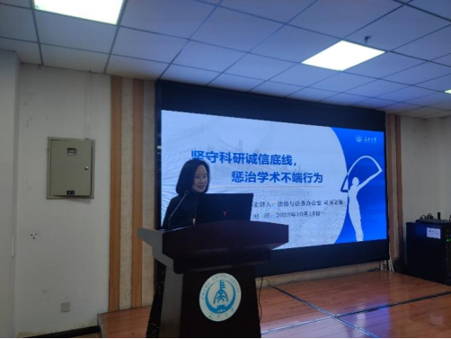 司马文妮副主任作“坚守科研诚信底线,惩治学术不端行为”主题报告,对科研诚信与学术规范的定义、学术不端的类型、行为规范以及构建科研诚信体系等方面进行讲解,同时对高校科研工作相关法律法规、澳门金沙娱乐城app