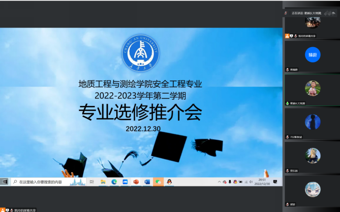 安全工程系组织召开“2022-2023学年第二学期专业选修推介会”线上会议。本次会议由系副主任李凯玲副教授主持,安全工程系全体教师及相关学生参加。