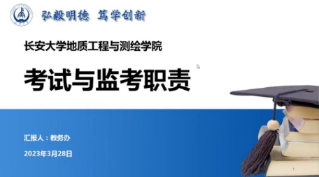 赵梓余老师首先传达了长安大学教务处关于考试考务工作的基本要求,对监考教师的职责、操作规程以及注意事项进行了详细讲解,对监考工作中常见问题做了举例说明。最后,荆书记和邵院长总结强调,希望每位监考老师能够高度重视,尽职尽责,严肃考场纪律,规范操作流程,认真、细致、规范完成每场监考工作,给学生创造一个公平、公正、和谐、有序的考试环境,促进优良考风、学风的形成。最后,安工系翟越主任希望全系老师们能够合理安排各自工作,配合澳门金沙娱乐城app