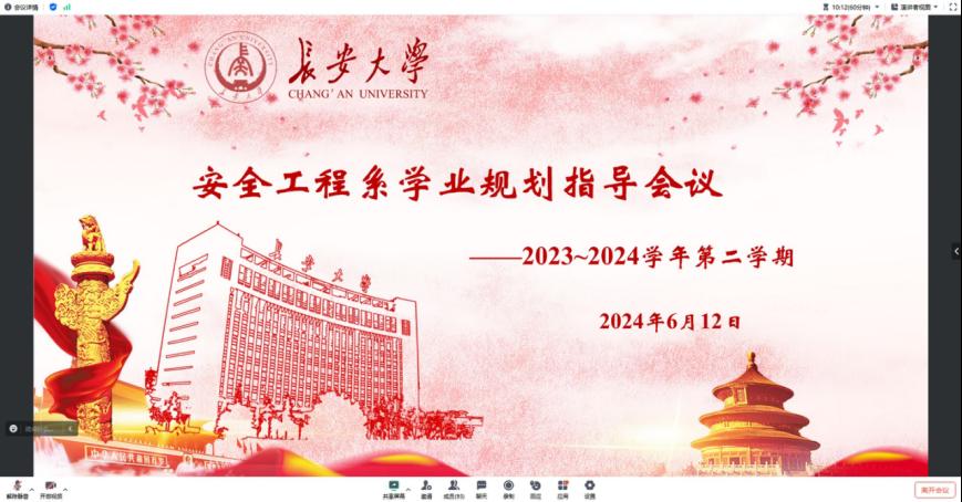 依据《长安大学本科生学业预警与帮扶办法(试行)》(长大教〔2022〕31号),为了响应教务处的号召,全面落实本学期学业预警与帮扶工作,以及助推安全工程系预警学生顺利完成学业。安全工程系于2024年6月12日晚7:30通过线上平台召开了学业规划指导会议。安全工程系全体教师和全部安全工程系预警学生参加了会议,会议由系副主任李凯玲副教授主持。