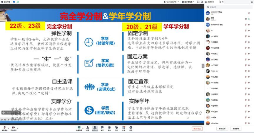 座谈会上,屈璐老师根据《长安大学本科生学籍管理规定(2022版)》(长大教〔2022〕231号)以及各年级本科生学生手册,详尽地阐释了长安大学各级本科生的毕业要求,针对2020和2021级、2022和2023级本科生分别进行了澳门金沙娱乐城app